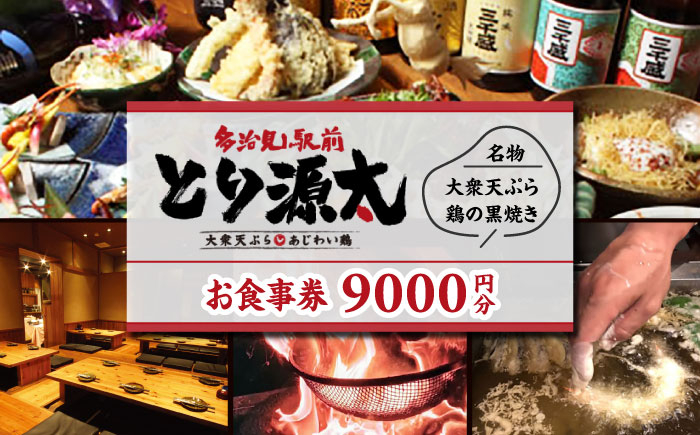 居酒屋 飲み放題 個室 多治見市 食事券 チケット 多治見駅前 とり源太 お食事券 9,000円分 多治見市 居酒屋 個室 飲み放題 チケット [TGH023]