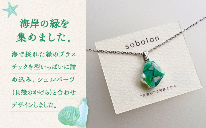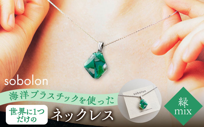 "可愛い"で地球を守るハンドメイドジュエリー 【チェーンの色が選べる】 海洋プラスチックから生まれた ネックレス sobolon いびつちゃん 緑MIX 多治見市 [TFC024]