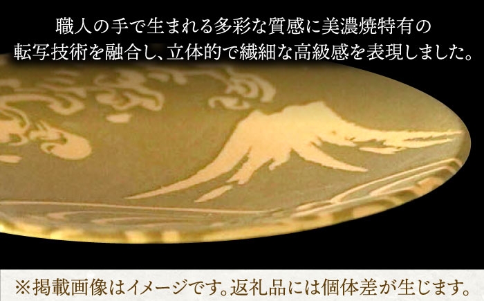 職人達が作り出す様々なテクスチャーに美濃焼のもう一つの特徴であるシルクスクリーンを用いた転写技術でつくられた雲母(きら)金を施した転写紙を重ねる事により立体的かつ繊細で高質感な表現を可能にしました。