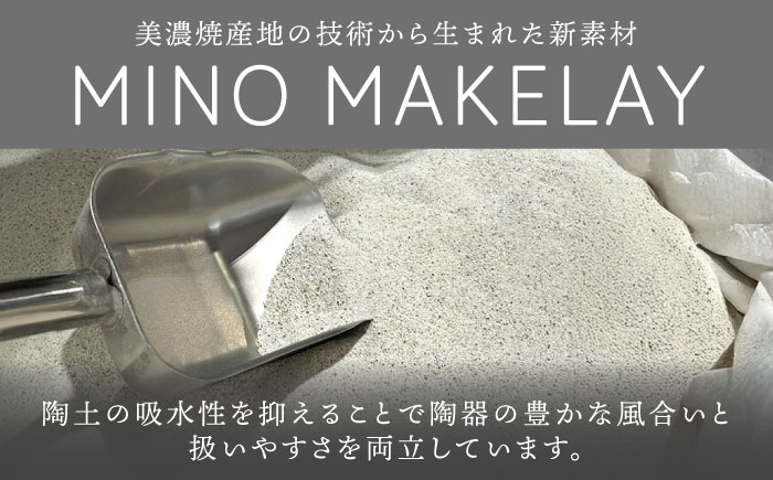美濃焼産地特有の技術を使って作った新素材の粘土、MINOMAKELAY(ミノメイクレイ)。