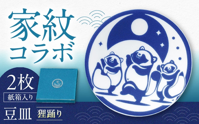 家紋 小皿 豆皿 贈り物 ギフト 伝統 日本 和柄 サッカー 航海 狸 和風 【美濃焼】家紋コラボシリーズ キャラクターコンテンツ イングレ豆皿 『狸踊り』 2枚セット 多治見市 / 丸モ高木陶器 豆皿 小皿 和風 贈り物 [TBA321]