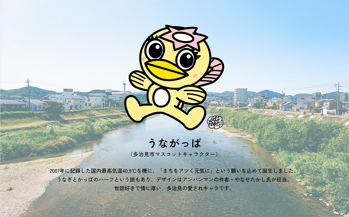 岐阜県多治見市公式マスコットキャラクター「うながっぱ」を用いて可愛らしく仕上げました。