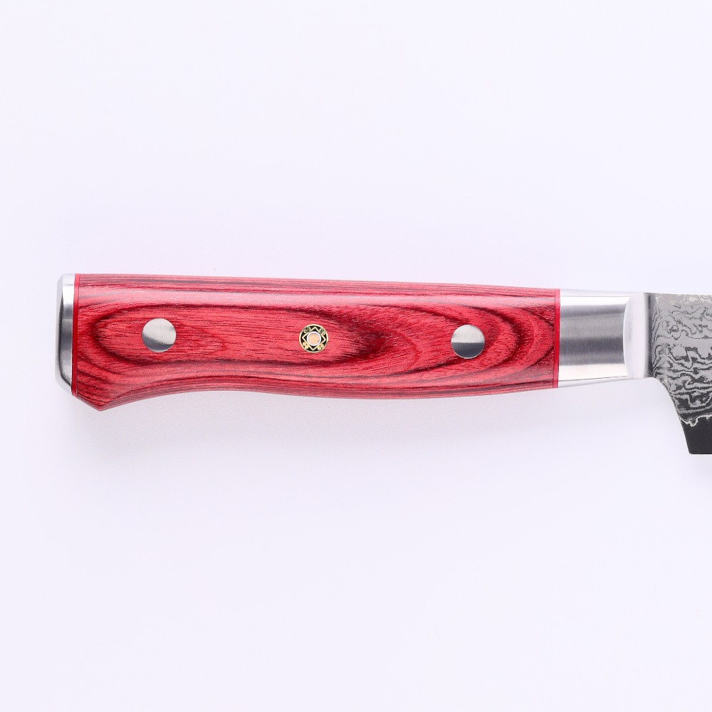 | 容量 | パン切り包丁×1 【サイズ】全長370mm、刃渡り230mm 【重さ】160g 【原材料】ブレード:33層ダマスカス鋼(VG-10)、ハンドル:赤合金 |
