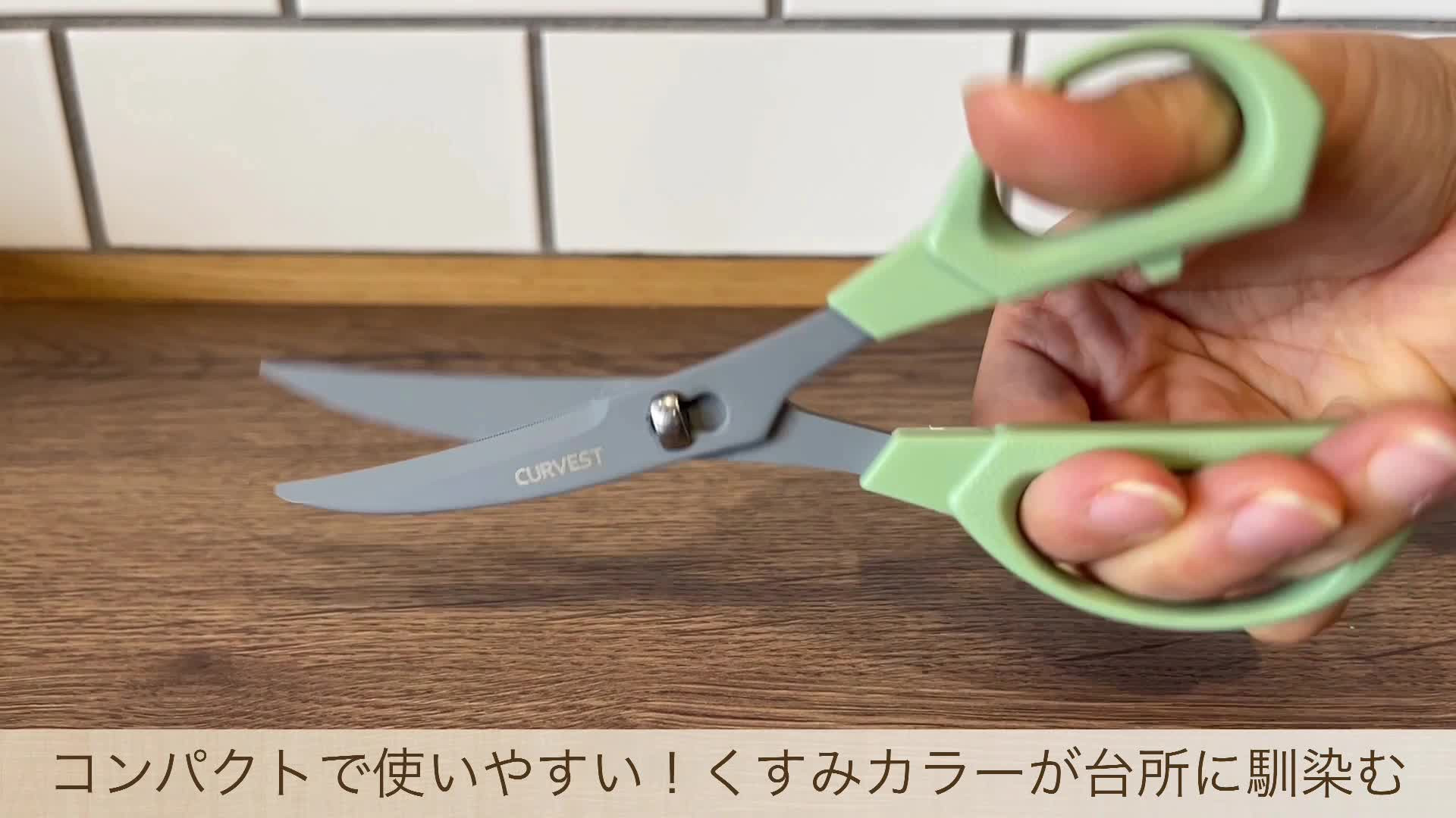 チョイスPayポイントと交換できる品 引き切り効果によるなめらかな切れ味! キッチンハサミ CURVEST グリーン ~キッチンハサミ はさみ フッ素コート 食洗機対応 分解式 刃物 ニッケン刃物 キッチン鋏 キッチンはさみ キッチンツール キッチン用品 調理器具~