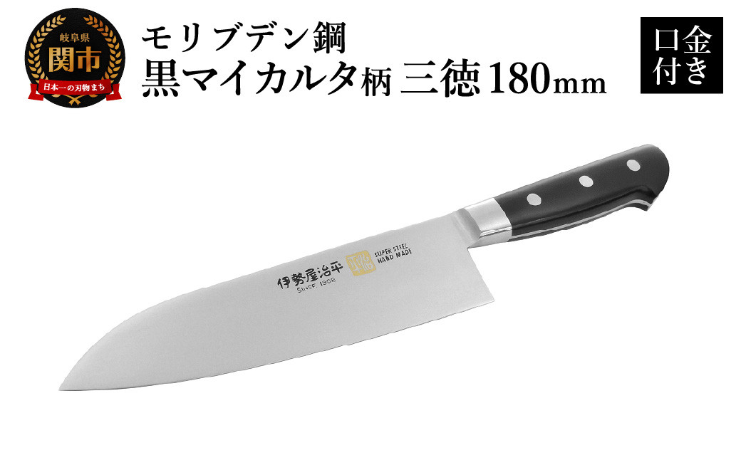 チョイスPayポイントと交換できる品 伊勢屋治平が丹念に作り上げた黒マイカルタ柄の包丁です。 三徳180mm 伊勢屋治平 モリブデン鋼 口金付 黒マイカルタ(F-5) /包丁 ナイフ