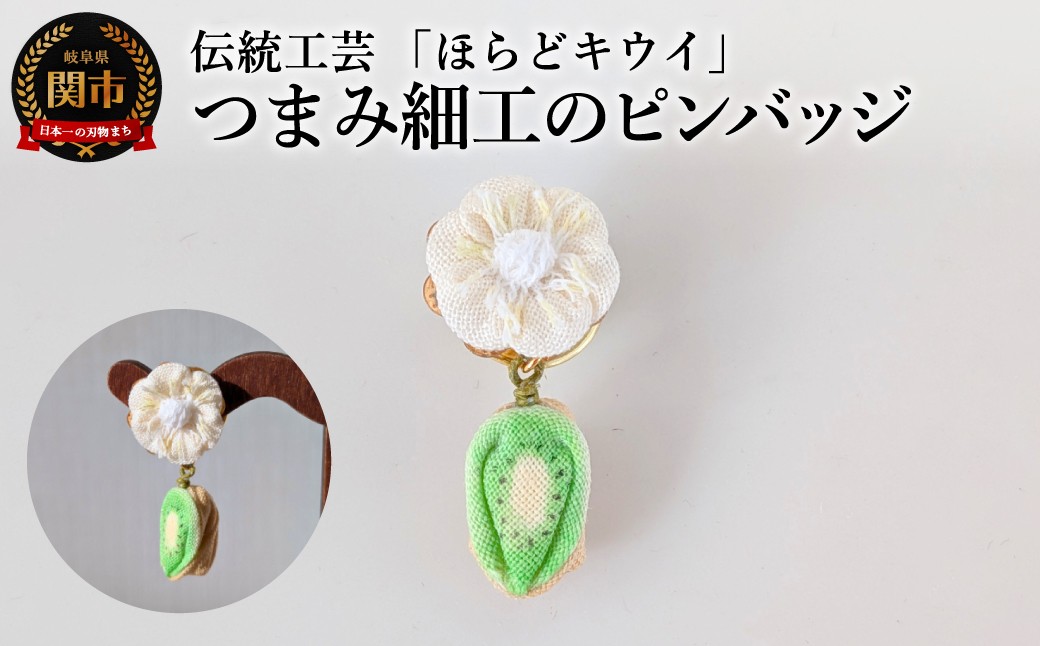 チョイスPayポイントと交換できる品 農業×伝統工芸の振興を!小さなつまみ細工を身に着けて、ほらどキウイを応援しよう! 岐阜県関市産「ほらどキウイ」モチーフ伝統工芸つまみ細工のピンバッチ【ハンドメイド・アクセサリー】 / 金属製ブローチピン つまみ細工 伝統工芸