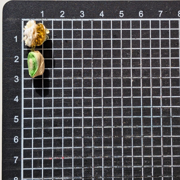 江戸時代から受け継がれる技術により、小さな布片を折り重ね、自然のかたちを繊細に仕上げています。