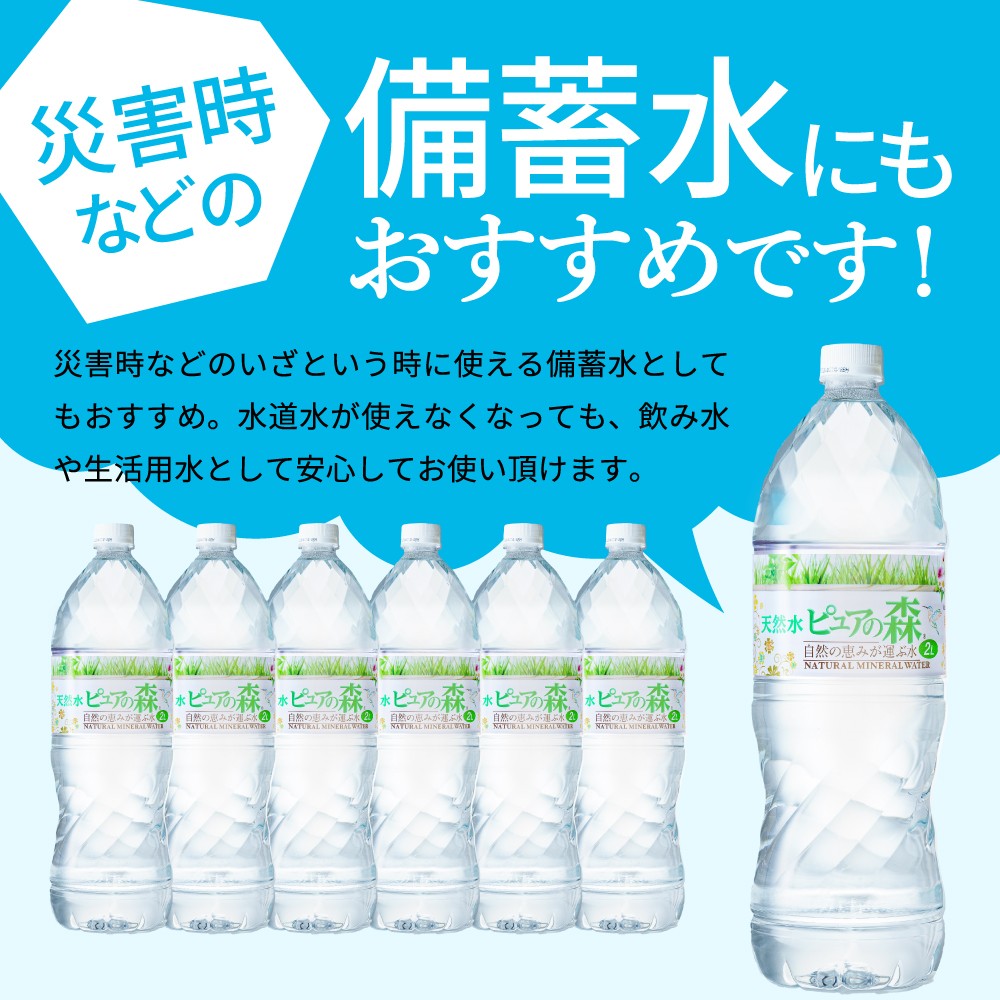 チョイスPayポイントと交換できる品 「自然の恵みが運ぶ水」「自然が生んだおいしい天然水」です! 2L×12本 硬度27mg/L 超軟水! ナチュラルミネラルウォーター ピュアの森 2L×6本(6本入×1箱)軟水・ペットボトル・飲料水・水