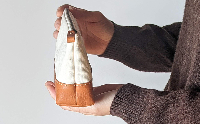 どちらの素材も使い込むほど魅力が増していきますので「育てるポーチ」として様々な用途にお使いいただけたらと思います。