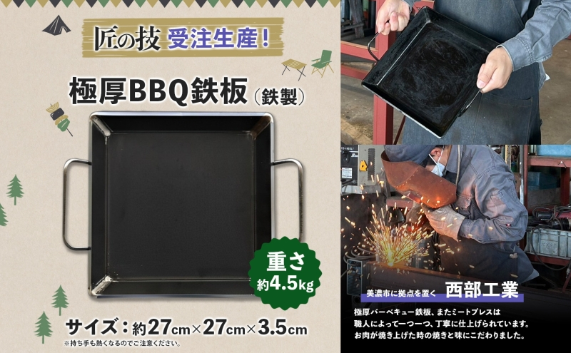 [№5308-0387]極厚 鉄板 27cm×27cm キャンプ BBQ バーベキュー 焼き肉 焼肉 鉄板焼き キャンプギア 調理器具 料理 アウトドア 匠 職人 無骨 送料無料 西部工業 岐阜県 美濃市