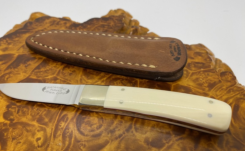 【製作者の紹介】渡邉隆之。岐阜県美濃市に工房を構え、長年に渡りカスタムナイフを製作。日本のカスタムナイフメーカーの巨匠相田義人氏に師事し、職人としての技術を一心に磨いた。その洗練されたデザイン性と高い技術で、カスタムナイフの父である故ラブレス氏も認めたカスタムナイフ職人。