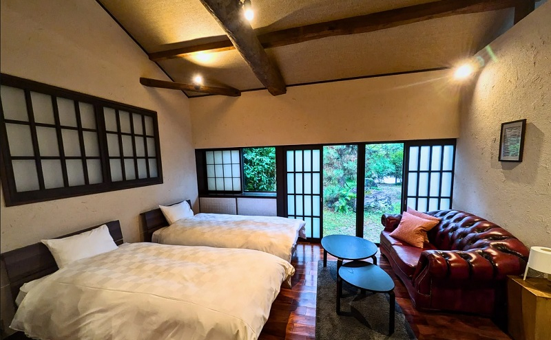 | 容量 | 【離-RI-】洋室ツイン 離れ-1階 広さ26平方m/シャワー・トイレ付 【施設情報】 ■無料貸切風呂 ・プライベートの空間で坪庭を眺めながらゆったりとお寛ぎいただける貸切風呂をご用意しております。 ・利用時間:1回45分(15時~/16時~/17時~/18時~/19時~/20時~) ・予約方法:チェックインの際に先着順で予約を承ります。 ■無料貸切岩盤浴 ・特別な1日の思い出に心安らぐ貸切岩盤浴をご利用いただけます。 ・利用時間:1回45分(15時~/16時~/17時~/18時~/19時~/20時~) ・予約方法:事前予約が必須のため、お電話またはメールにてご連絡ください。 ※宿泊状況により希望時間にご案内できない場合、施設より別途ご連絡いたします。 【駐車場】 ・無料駐車場あり(敷地内) ※合計4台(小型車まで計2台/中型車まで計2台) ワンボックス・大型SUVは市営駐車場へ駐車ください。 【ご予約時の注意事項】 ※古民家を使用した昔ながらの木造建築のため、防音対策がございません。あらかじめご了承くださいませ。 ※12歳以下のお子様のご宿泊はご遠慮いただいております。 |