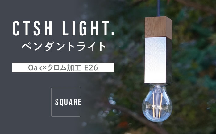 インゴット削り出しによる照明器具【ファクトリーカカムコラボ製品】 CTSH LIGHT. ペンダントライト SQUARE<Oak×クロム加工 E26> 瑞浪市 / ジオニック 照明器具 ソケット 鉄 木製 シルバー [AZBQ050]