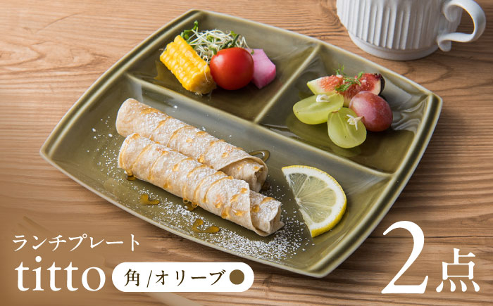 美濃焼 焼き物 陶磁器 食器 皿 プレート ランチプレート 仕切り皿 かわいい 【オリーブ】【美濃焼】 ランチプレート titto 角 2枚セット / JS企画 / 小田陶器 [AZAZ006]