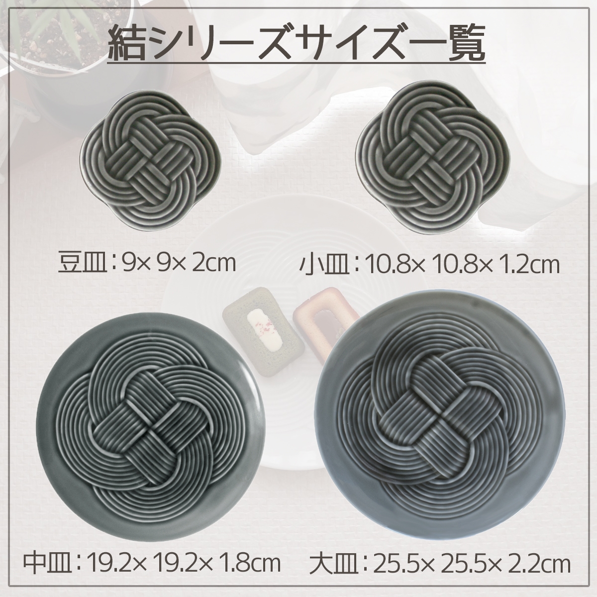 結 プレート 中皿 墨 ブラック 黒 19.2cm 300g 日本製 美濃焼 取り皿 ケーキ皿 丸皿 皿 デザート 和菓子 お祝い 結び 結婚式 正月 食器 国産 陶器 小田陶器 みずなみ焼 節分 ひな祭り 食洗器対応可