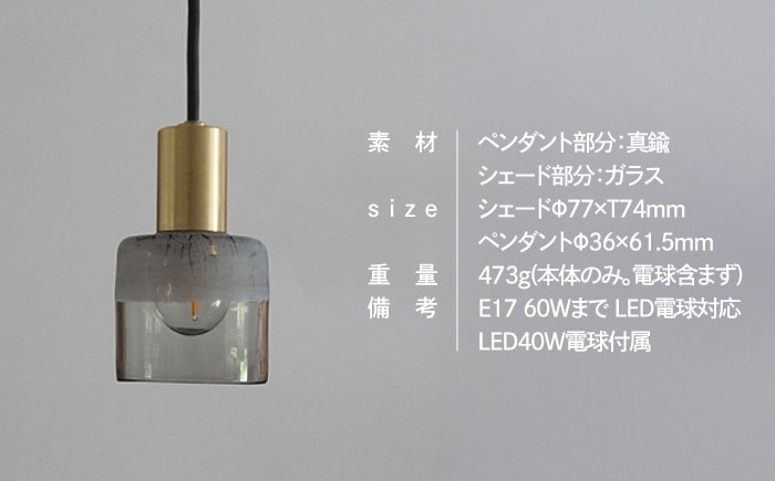 glass studio三日月とCTSH LIGHT.のコラボ製品 CTSH LIGHT. ペンダントライト<三日月 : toudo E17 グレー> 瑞浪市 / ジオニック 照明器具 ソケット 真鍮 ガラス シェード [AZBQ120]