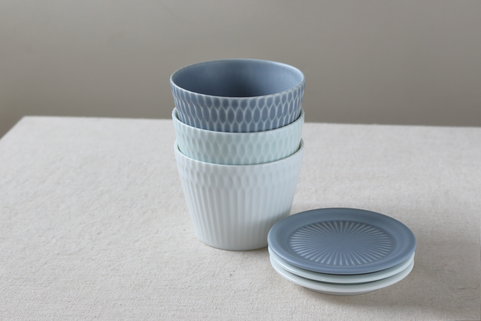 波打ち際を思わせる、伝統的なしのぎ文様のレリーフが料理をやさしく彩る華やかな器 【美濃焼】 さざなみ 9フタ小皿 ブルーグレー 4枚セット 瑞浪市 / JS企画 小田陶器 皿 小皿 プレート [AZAZ136]