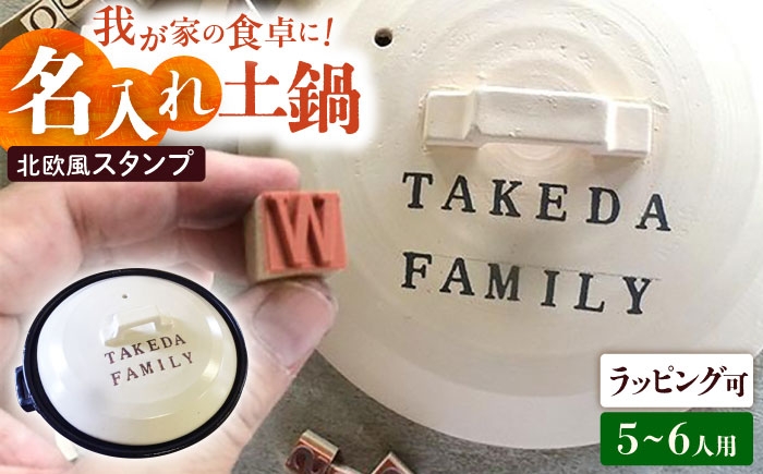 美濃焼 陶磁器 陶器 土鍋 鍋 どなべ 名入れ 直火 IH かわいい ギフト 【美濃焼】 名入れオーダー 土鍋 ハンドメイドスタンプ土鍋 ナチュラル 9号 (5-6人用) ガス、IH対応 IHプレート付 KEN020 瑞浪市 / ながしまプランニングオフィス 陶器 どなべ 鍋 レンジOK オーブンOK [AZBM064]