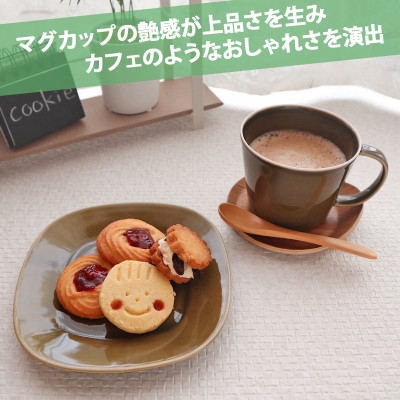 シンプルでおしゃれな美濃焼・プレーリーシリーズ 【美濃焼】 プレーリー オリーブ カップL プレートS 2客セット 瑞浪市 / JS企画 小田陶器 セット 食器 コップ カップ プレート 皿 小皿 マグカップ マグ [AZAZ255]