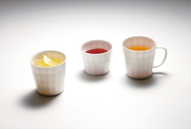 日が当たり、カーテンのように透けると内と外が交差して格子柄が浮かび上がるおしゃれな食器。