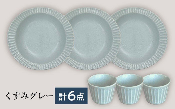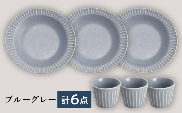 しのぎ文様が料理を引き立てるうつわ 【選べる2色タイプ】【美濃焼/みずなみ焼】 しのぎ カレーパスタ皿&カップ 各3個 6点セット 瑞浪市 / 山喜製陶 プレート マルチカップ 食器 [AZCP005]