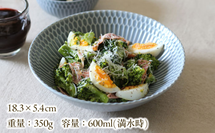 | 容量 | ■鉢×2枚 カラー:ブルーグレー サイズ:18.3×5.4cm 重量:350g 容量:600ml(満水時) 素材:美濃焼(日本製) 【対応機器】 電子レンジ○ / オーブン× / 食洗機○ 【加工地】 岐阜県瑞浪市 |