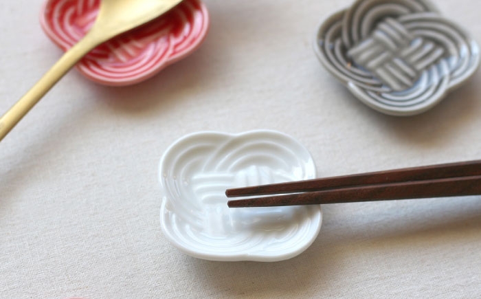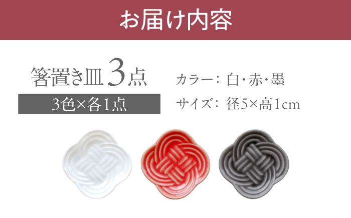 お祝いの席にも。美濃焼・陶器の町、岐阜県瑞浪市のメーカー、小田陶器の結シリーズ。 【美濃焼】 結 箸置き皿 白 赤 墨 3色各1枚セット 瑞浪市 / JS企画 / 小田陶器 食器 プレート 皿 カトラリーレスト [AZAZ295]