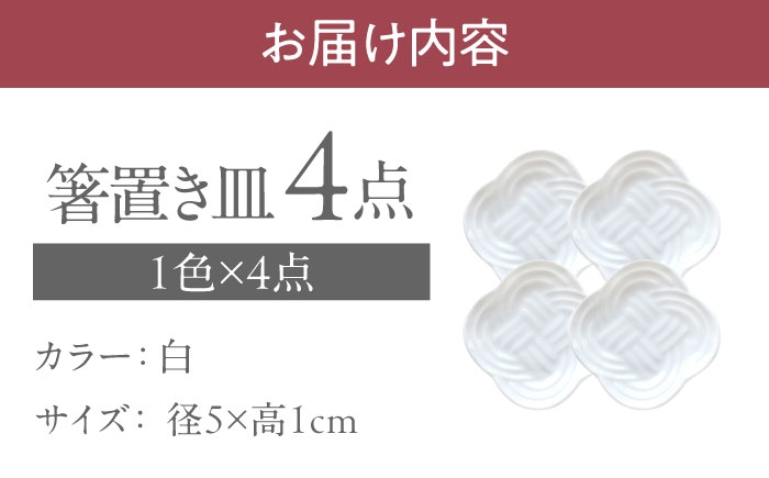 お祝いの席にも。美濃焼・陶器の町、岐阜県瑞浪市のメーカー、小田陶器の結シリーズ。 【美濃焼】 結 箸置き皿 白 4枚セット 瑞浪市 / JS企画 / 小田陶器 [AZAZ292]