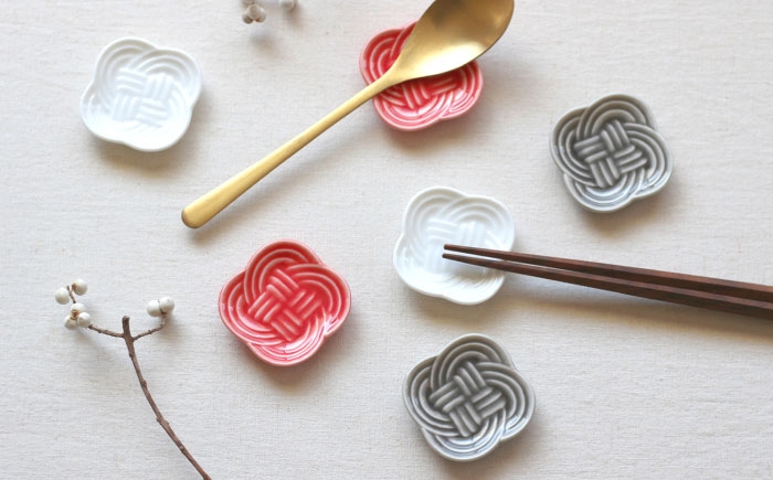 結 プレート 豆皿 白 ホワイト 日本製 美濃焼 取り皿 丸皿 皿 デザート 和菓子 お祝い 結び 結婚式 正月 食器 国産 陶器 小田陶器 みずなみ焼 節分 ひな祭り 食洗器対応可