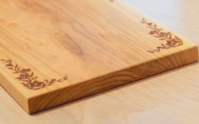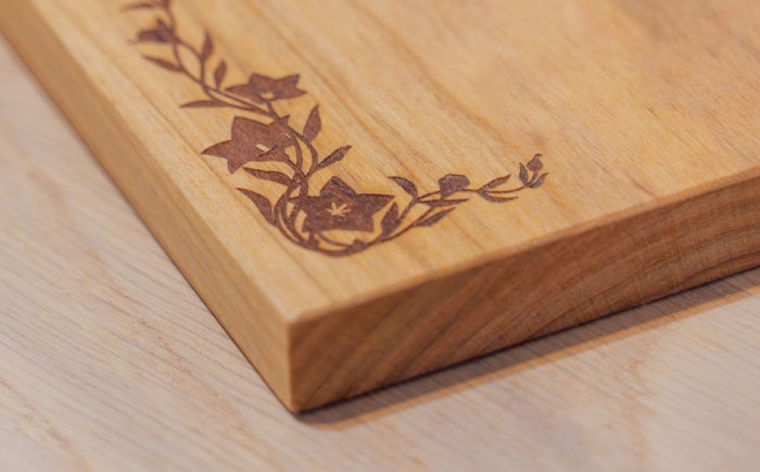 飾っておきたくなる、木製カッティングボード! デザインカッティングボード 桔梗柄 ヤマザクラ 瑞浪市 / YADOSHIBI まな板 木製 カッティングボード おしゃれ [AZDI002]