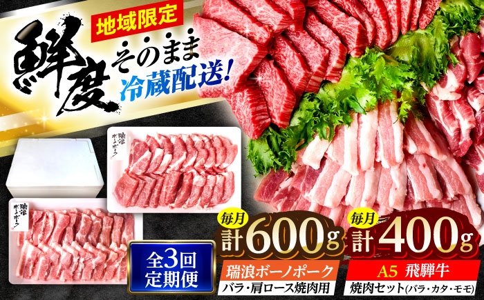 牛肉 和牛 ブランド牛 銘柄牛 飛騨牛 豚肉 焼肉用 肩 モモ ロース セット 【3回定期便】 ※冷蔵配送/地域限定※ 飛騨牛 ボーノポーク 焼肉セット 合計1kg 瑞浪市 / きなぁた瑞浪 和牛 国産 岐阜県産 [AZCI095]