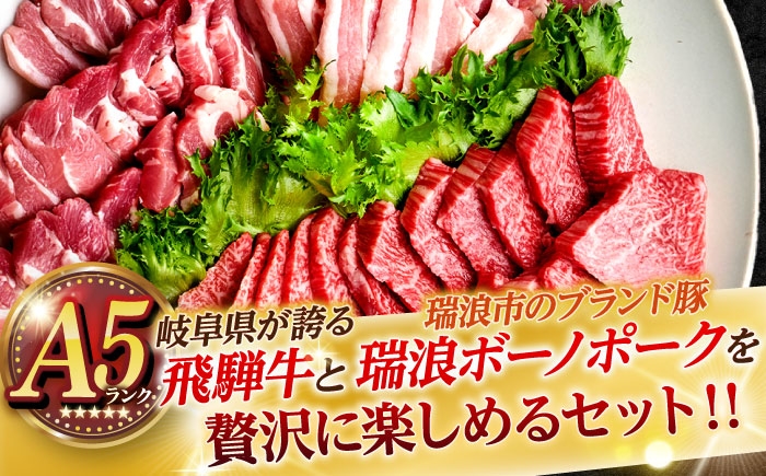 岐阜県が誇る飛騨牛。厳選したA5等級焼肉用と瑞浪のブランド豚肉、瑞浪ボーノポーク焼肉用をセットにしました。