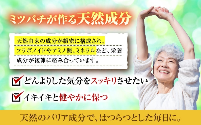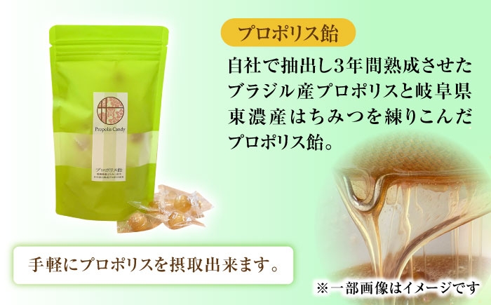 市内製造のプロポリス抽出液と蜂蜜を使用しており、日常的に取り入れやすい飴タイプの食品です。
