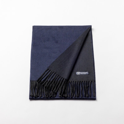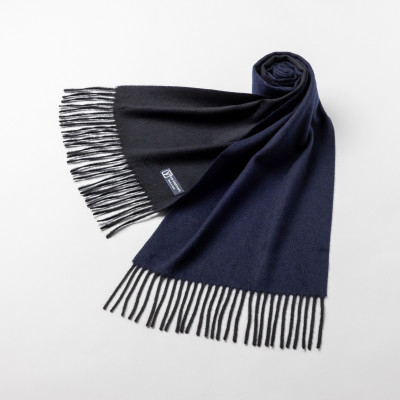 リバーシブル風 カシミヤ100% マフラー(ネイビーブルー×ブラック)【1491460】