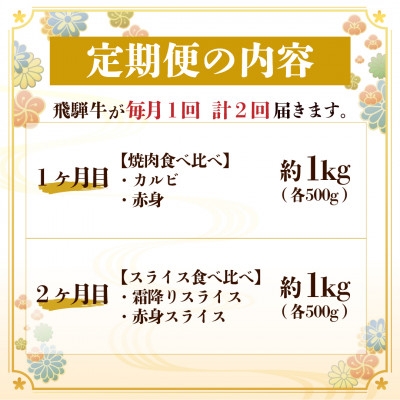 飛騨牛霜降り・赤身食べ比べセット 2ヶ月定期便 計2kg A4~A5【4057105】