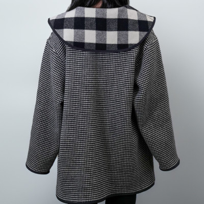 高級ラムウールを使用し、ブラックチェックと千鳥格子の二重織をした『リバーシブルコート』です。