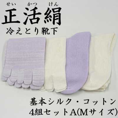 正活絹 冷えとり靴下 基本シルク・コットン4組セットA(Mサイズ)【1581450】