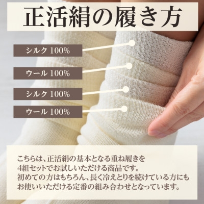 正活絹 冷えとり靴下 基本シルク・ウール4組セット(Lサイズ)【1583865】
