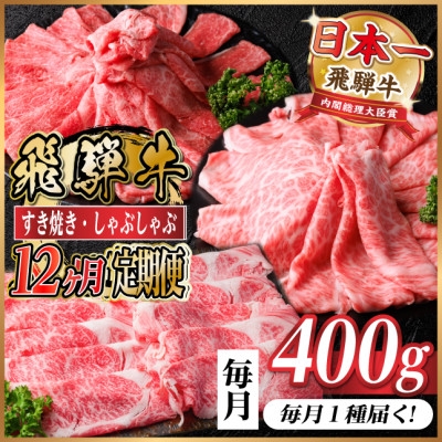 <毎月定期便>飛騨牛 厳選すき焼き・しゃぶしゃぶ用定期便400g全12回【4072793】