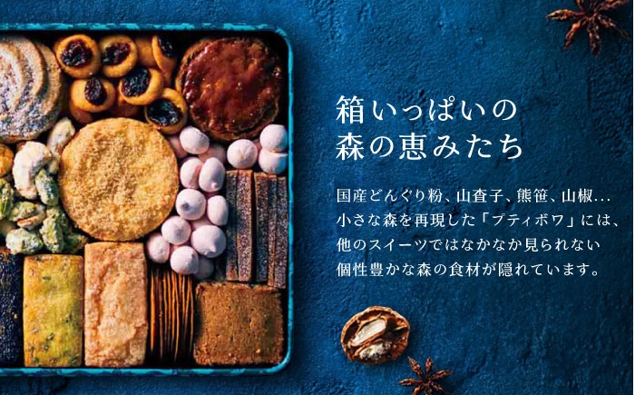 国産どんぐり粉、山査子、熊笹、山椒など小さな森を再現した「プティボワ」には個性豊かな森の食材が隠れています。