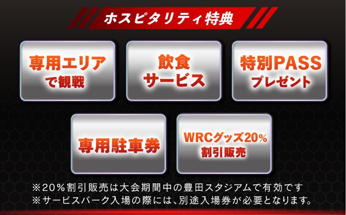 ・大会期間中に豊田スタジアムでのWRCグッズ20%割引販売(ラリージャパン公式グッズは対象外)