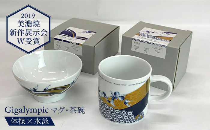 ユーモラスな鳥獣戯画とオシャレな伝統文様のコラボデザインです 【美濃焼】Gigalympic マグ・茶碗のセット 体操(マグ)×水泳(茶碗)(レンジ対応)【大東亜窯業】食器 うつわ マグカップ [MAG010]