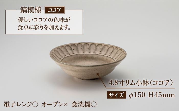 模様や色合いで変わる雰囲気を味わえるペアセット 【美濃焼】鎬 4.8寸リム 小鉢 セット 粉引(細)×ココア【藤山窯】【TOKI MINOYAKI返礼品】 [MAH051]