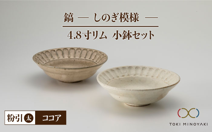 模様や色合いで変わる雰囲気を味わえるペアセット 【美濃焼】鎬 4.8寸リム 小鉢 セット 粉引(太)×ココア【藤山窯】【TOKI MINOYAKI返礼品】 [MAH053]