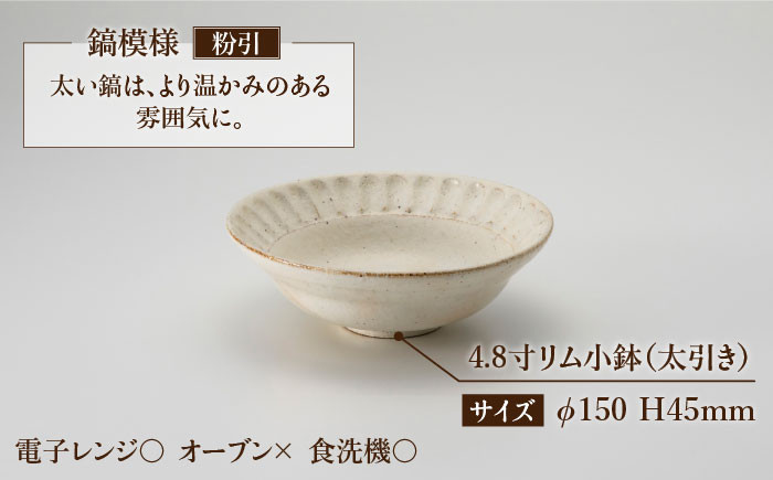【美濃焼】鎬 4.8寸リム 小鉢 セット 粉引(細)×粉引(太)【…