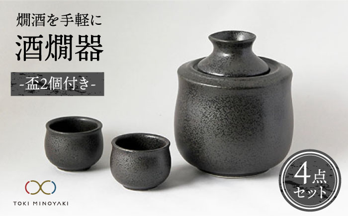 手軽に燗酒が楽しめる! 【美濃焼】<お好みの温度でお酒を楽しむ>酒燗器 盃2個セット 黒【山淳製陶所】【TOKI MINOYAKI返礼品】 食器 徳利 お猪口 冷酒 熱燗 [MAP002]