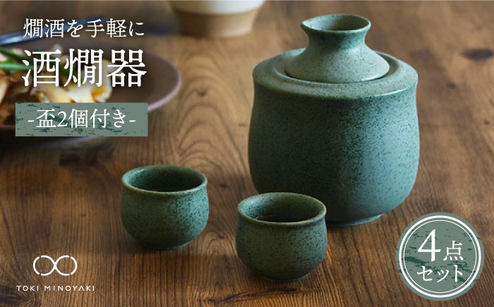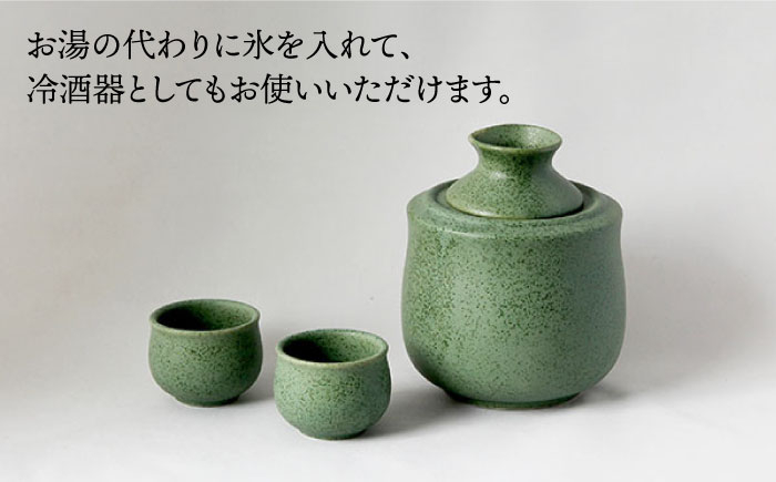 手軽に燗酒を楽しめる! 【美濃焼】<お好みの温度でお酒を楽しむ>酒燗器 盃2個セット ミドリ【山淳製陶所】【TOKI MINOYAKI返礼品】 食器 徳利 お猪口 冷酒 熱燗 [MAP004]