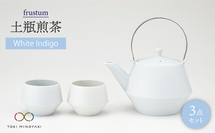 暮らしの中のオブジェクト 【美濃焼】frustum 土瓶煎茶3点セット(白藍)【晋山窯ヤマツ】【TOKI MINOYAKI返礼品】 急須 茶碗 茶器 [MAS012]