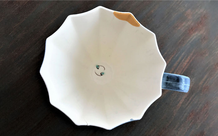 星座は、ロマンチックで癒されるモチーフ。どちらのシリーズも老若男女問わずご好評いただいております。カップの底に金彩の名入れをするサービスは、世界にひとつだけの私だけのカップという特別感が贈り物に大変喜ばれています。下絵付けをして、上薬を掛けて本焼成した後に、金彩絵付けをしてから再焼成をして仕上げます。傘をつぼめたような形は見た目に反して口当たりよく飲みやすく暮らしに寄り添うデイリーなマグカップです。マグカップとお揃いの手描きの金印篭箱に入れ、無地の和紙包装でお届けします。