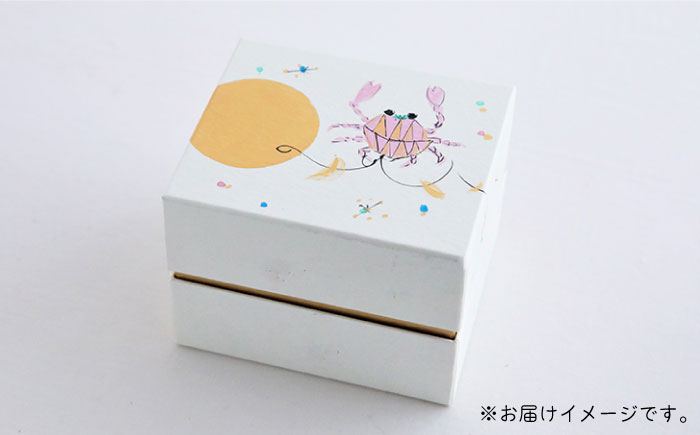 正面にマグカップの側面にはかにの絵と星座の形、底には星座のマークを描きました。絵柄の線の部分はエンボス彩で描いているため、絵柄が平面的ではなく立体的に表現されています。